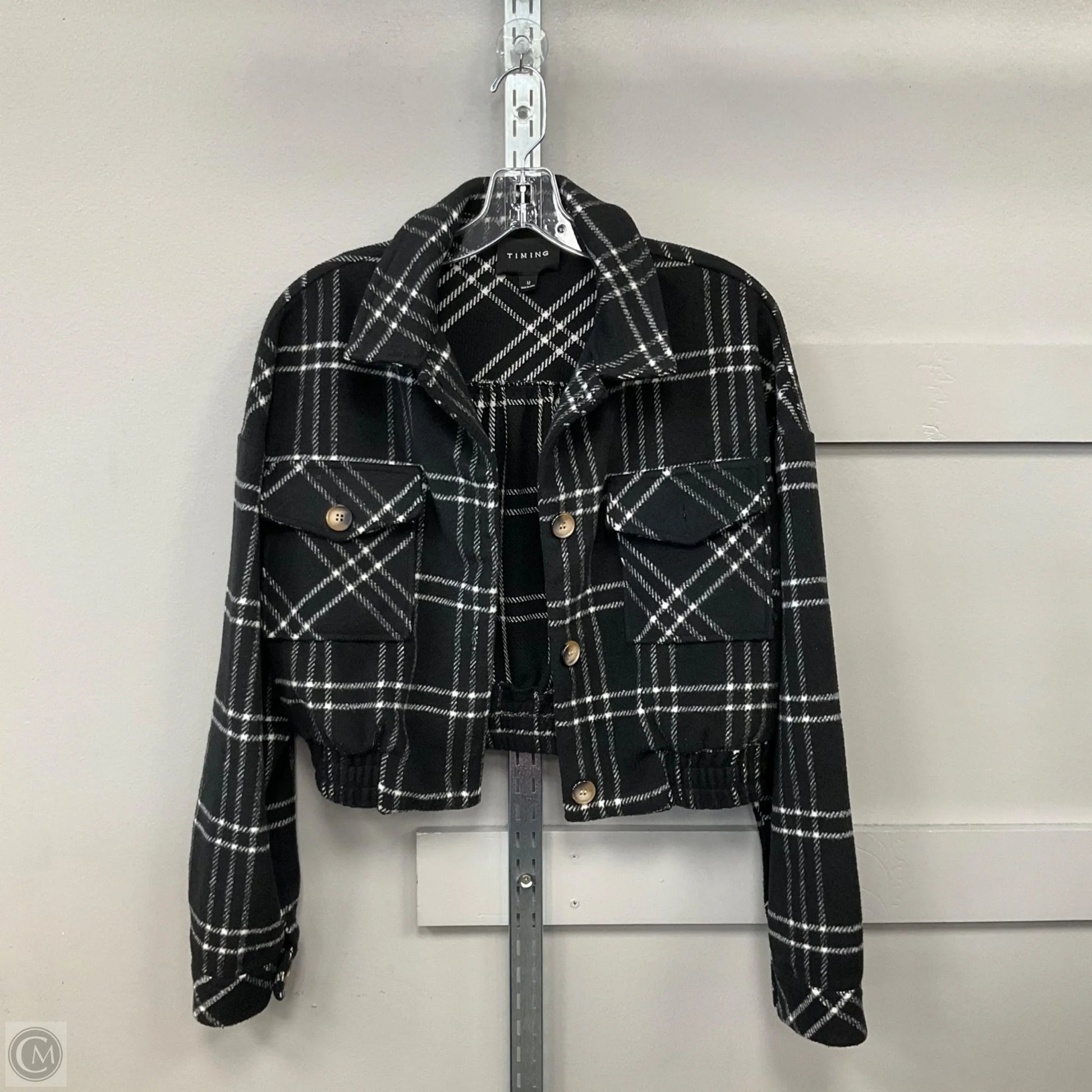 Wrap yourself in cozy style with this plaid pattern jacket by Timing! Size M for the perfect fit. Stay warm and trendy!