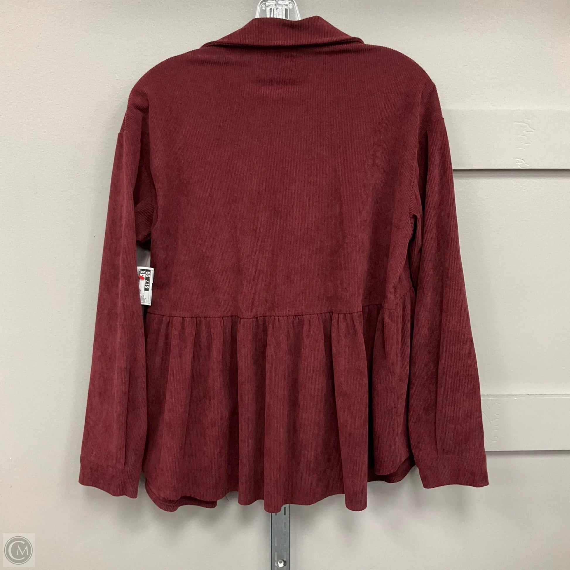 Jacket Shirt By Clothes Mentor In Maroon, Size: L